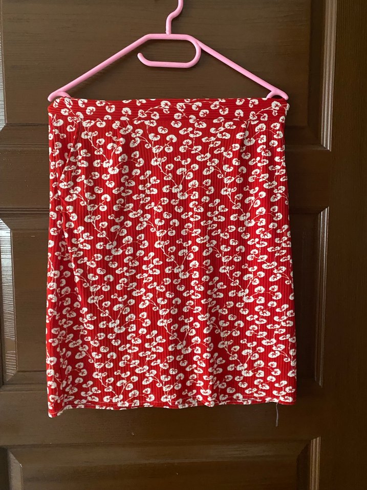 Kırmızı Pilili Midi Hamile Etek