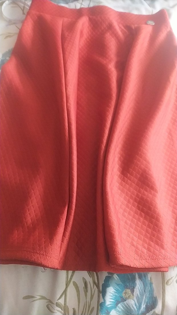 Kırmızı piliseli midi etek, bol kesim ve parlak sentetik kumaştan yapılmıştır. Günlük kullanım için rahat ve şık bir seçenektir.