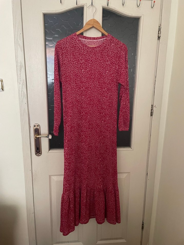 Kırmızı Piliseli Tesettür Elbise
