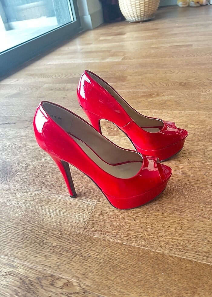 Kırmızı platform topuk rugan,gece gündüz giyilebilecek önü açık şık ayakkabı❤️yeni 1 kez giyildi.