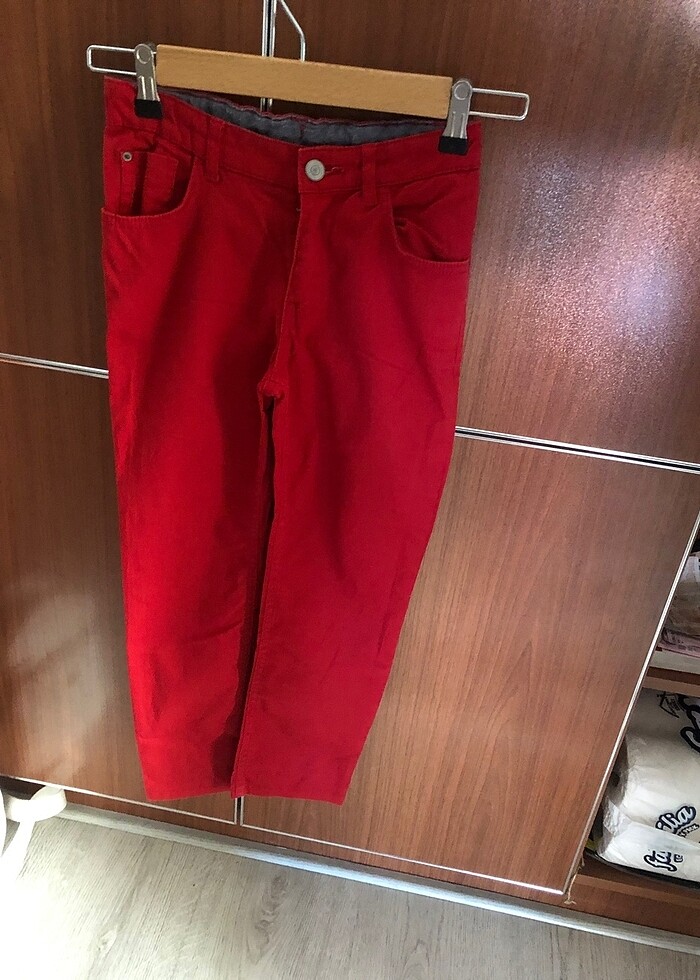 23 nisan gösterisi için alındı , oğlum pantolon giymeyi sevmediğinden birkaç kere giyildi , rengi duruşu yeni gibidir. Beli bedene göre ayarlanabilir resimde de göstermeye çalıştım