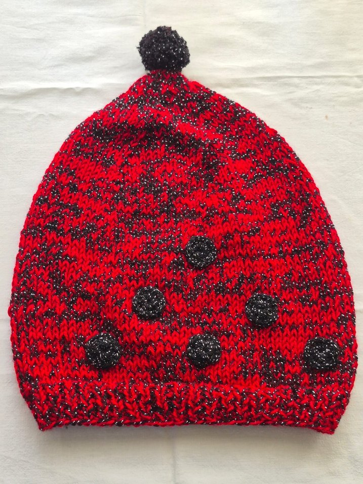 Kırmızı Ponponlu Kadın Örgü Bere