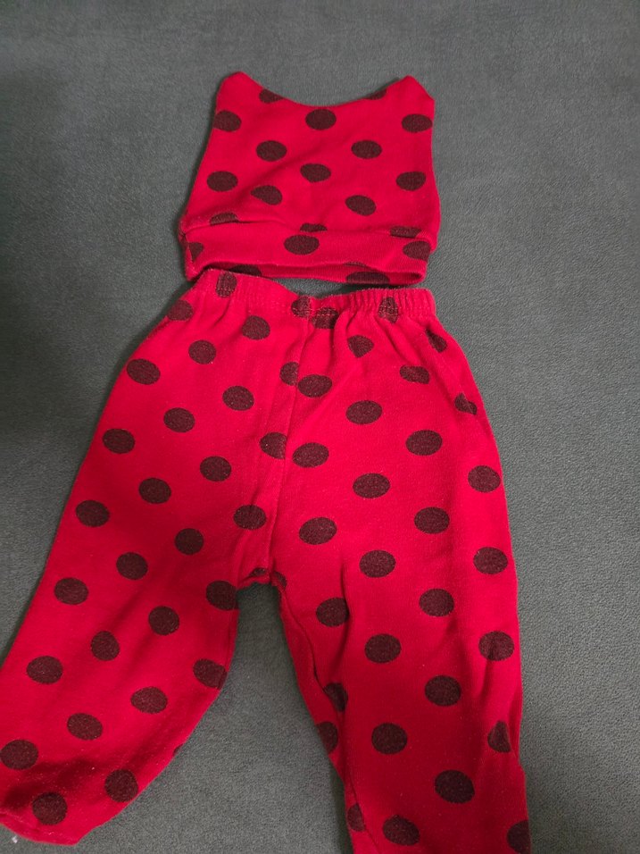Renkli puantiyeli, düğmeli kırmızı kolsuz bebek kız takımı. Yumuşak ve rahat kumaştan üretilmiştir.