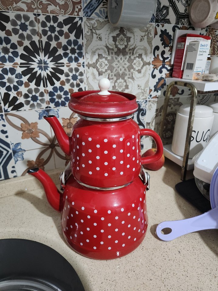 Kırmızı Puantiyeli Emaye Çaydanlık