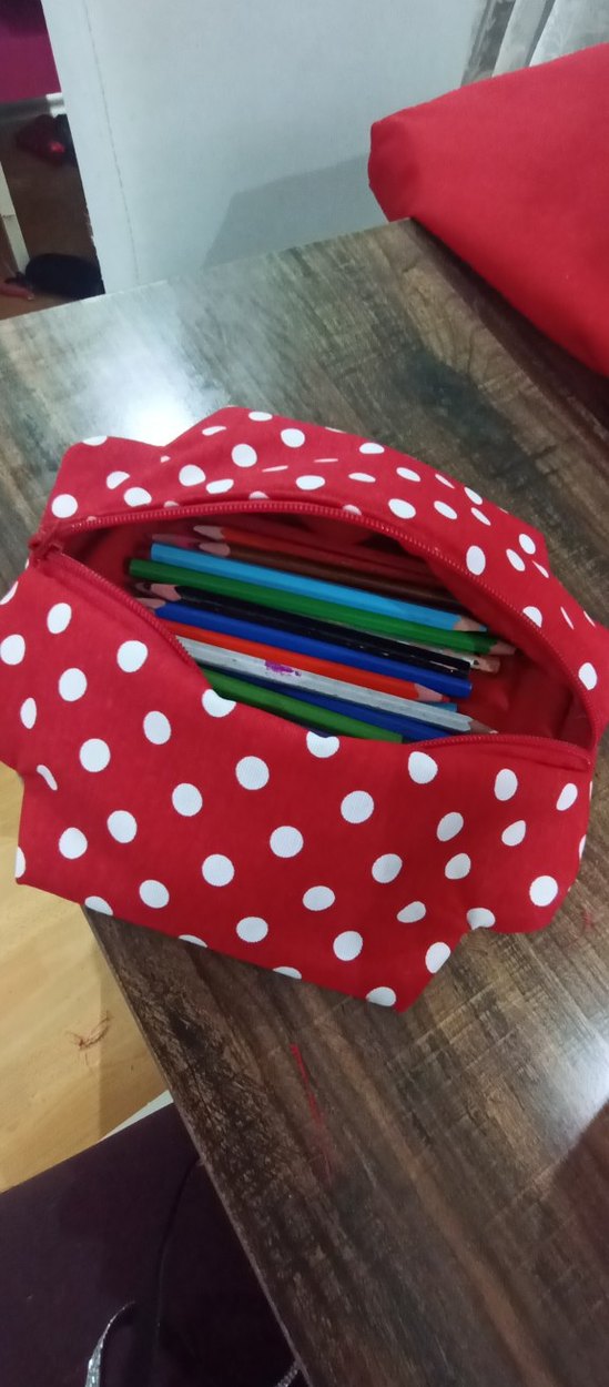 Kırmızı Puantiyeli Fermuarlı Makyaj Çantası kalem kutusu