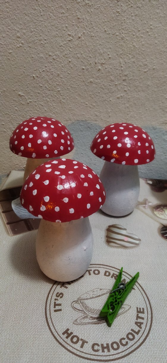Beyaz puantiyeli kırmızı mantar figürleri, pürüzsüz ve yuvarlak tasarıma sahip. Dekorasyona neşeli bir dokunuş katar .