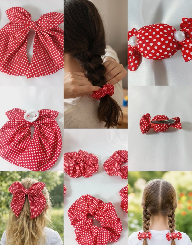 Kırmızı Puantiyeli Saç Aksesuar seti