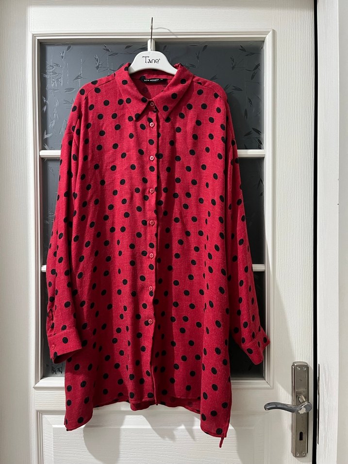 Kırmızı Puantiyeli Uzun Kollu Kadın Gömlek