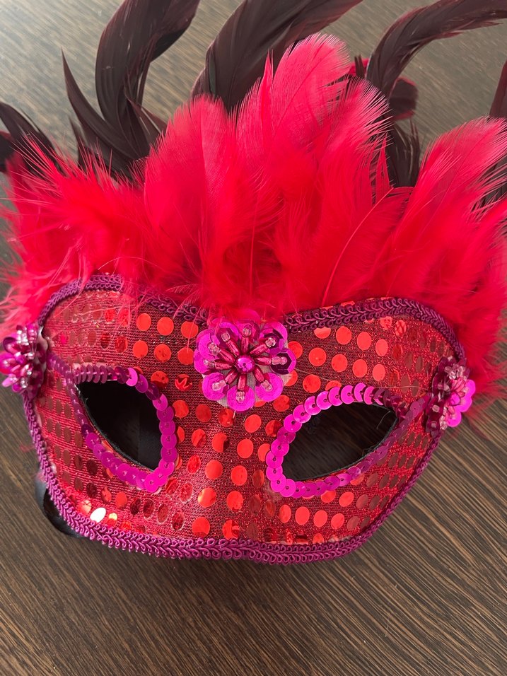 Üzeri pullu üst kısmı kuş tüyü dekorlu arkadan bağcıklı içi keçelidir Hiç deforme yok Maskeli partide güzel bir aksesuar olacaktır #party #maske #americsn vintage #stil #pullu maske #kırmızı #kuş tüyü #yeni yıl #noel #yılbaşı #özel #konsept