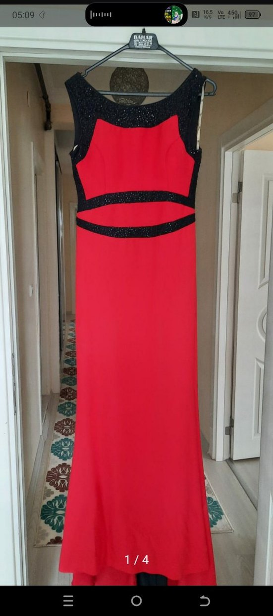 Kırmızı pullu Uzun Abiye Elbise
