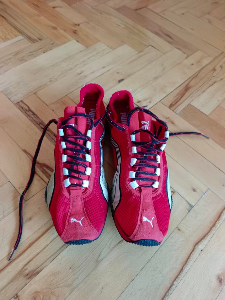 Kırmızı Puma spor ayakkabısı, lastik taban ve elastik detaylara sahip, sokak modasına uygun ve spor tarz için ideal. açılma var yapıştırıcıyla hal olur kullanmadığım için satişta