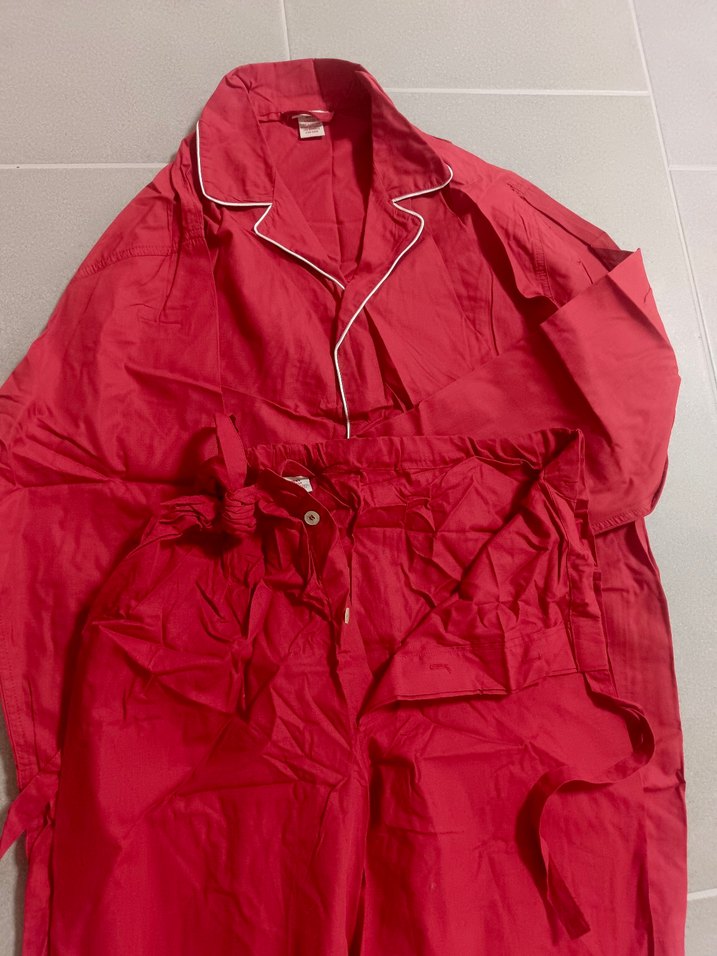 Erkekler için rahat kesim ve midi boyda, canlı kırmızı renkte pijama takımı. Beyaz şeritli klasik yakası ve bağcıklı beli ile rahat konforlu pijama takımı... M ve L beden mevcut