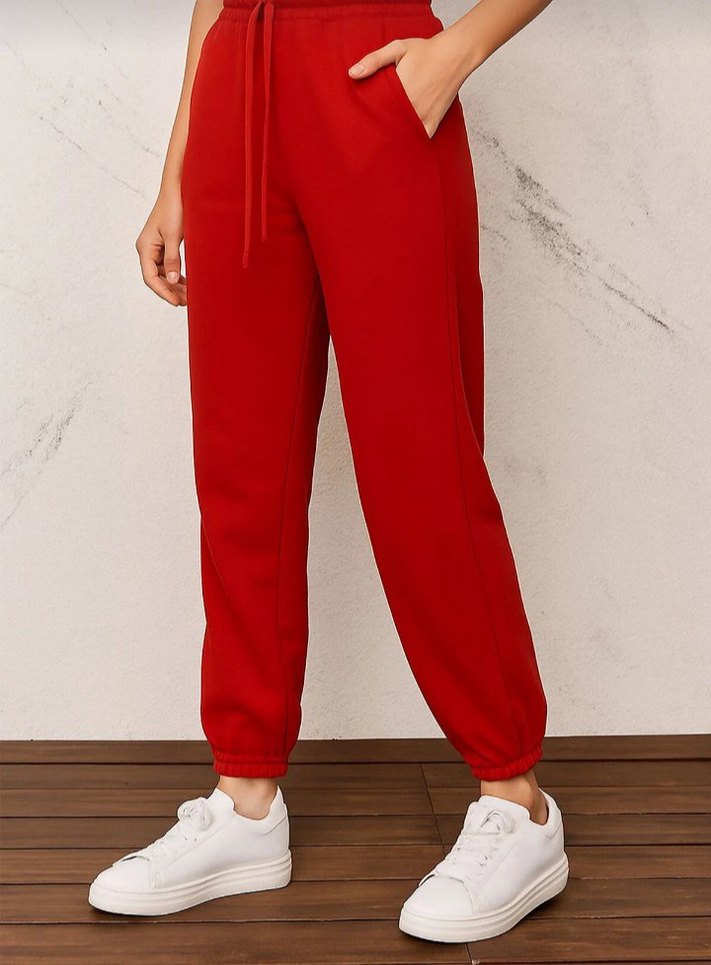 Kırmızı Rahat Kesim Kadın Eşofman Altı
