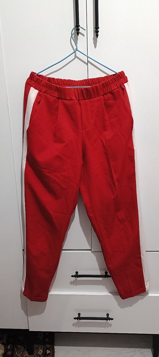 Lastikli bel detaylı, kırmızı rahat kesim midi pantolon. Yumuşak sentetik kumaştan, günlük kullanıma uygun. 40 beden. Addax ürünüdür.