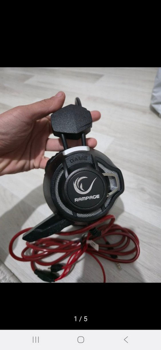 Rampage oyuncu kulaklığı, koyu renk ve kırmızı detaylara sahip, mikrofonlu ve oyun için güçlü ses sunar.