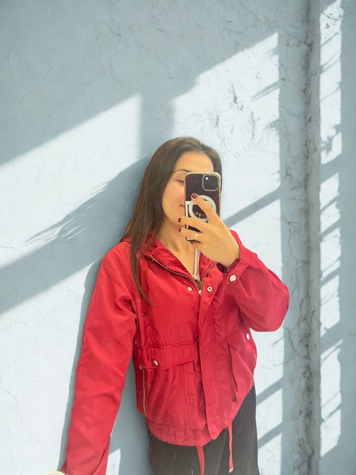 Kırmızı renk mevsimlik kullanılabilecek yagmurluk