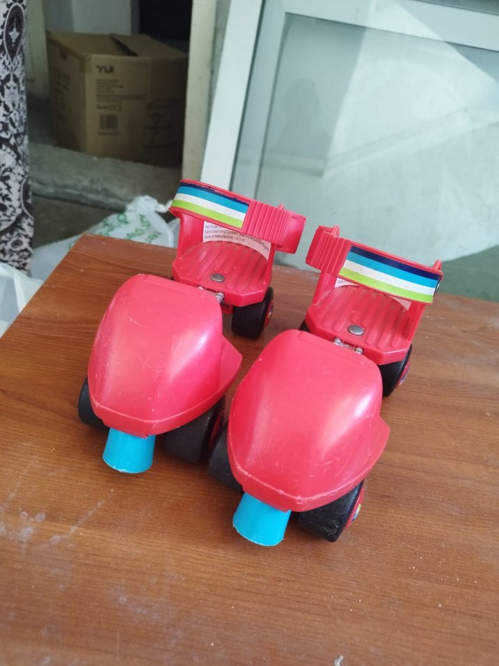 kırmızı renkte 2-4 yaş paten, çocukların hareket edip oynayabileceği renkli itme ve çekme oyuncakları. Dayanıklı plastikten yapılmıştır.