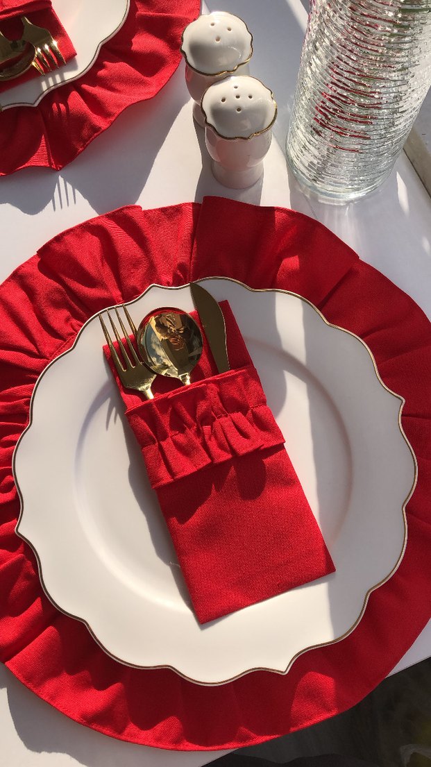 Kırmızı Renkli Çatal Kaşık Bıçak Kılıfı