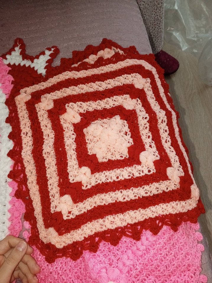 Kırmızı ve pembe renklerde, dokulu ve renkli el örgüsü banyo Lifi. Yumuşak ve dekoratif, banyo için uygun.