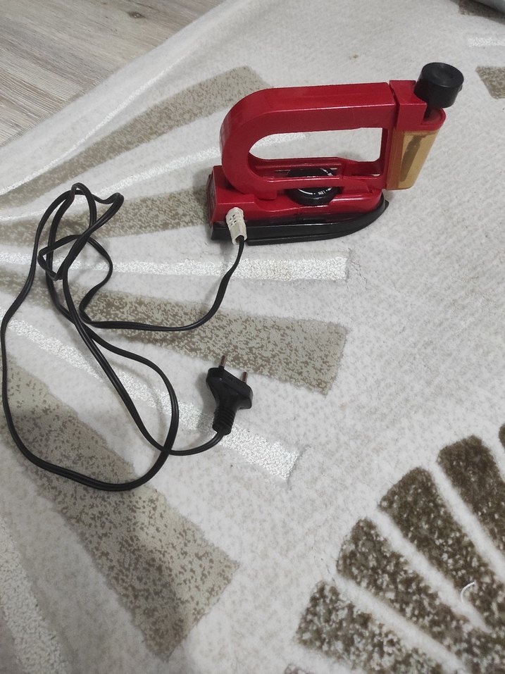 Kırmızı renkte, kompakt tasarımlı elektrikli ütüdür. Siyah tabanı ve kullanımı kolay güç kablosu bulunur.