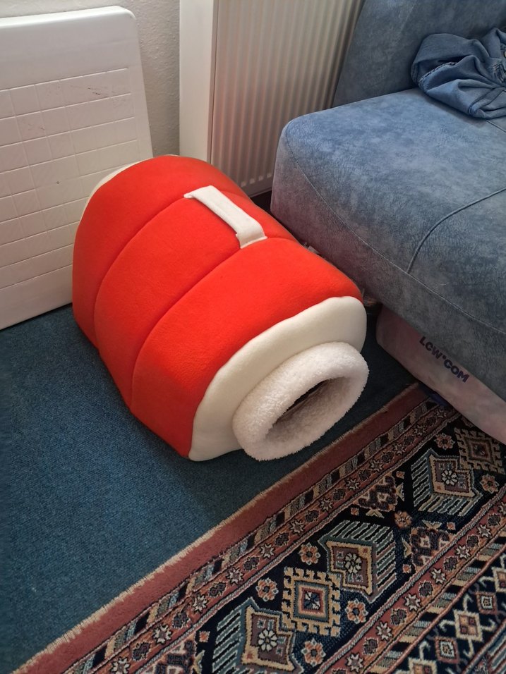 Yumuşak ve rahat kırmızı kedi tüneli, beyaz peluş giriş ile kedinizin dinlenip saklanması için ideal.LUTFEN TEKLIF GONDERMEYIN MAKUL FIYAT.