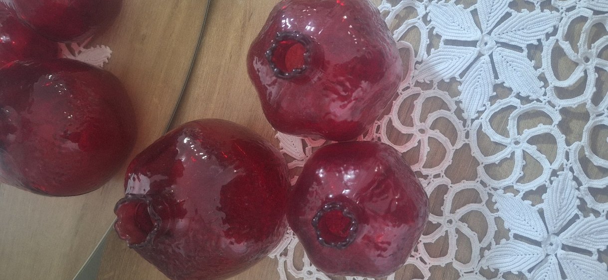 Parlak yüzeyli ve detaylı dokulu, renkli kırmızı nar figürleri, her mekâna canlılık katar.