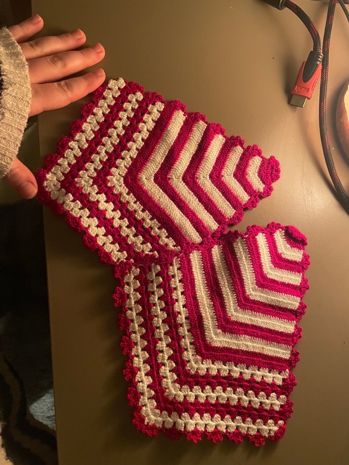 Kırmızı ve beyaz renklerde, dokulu desene sahip örgü banyo süngerleri, nazik temizlik için uygundur. Fırın eldiveni veya dekor olarak da kullanılabilir El örgüsüdür