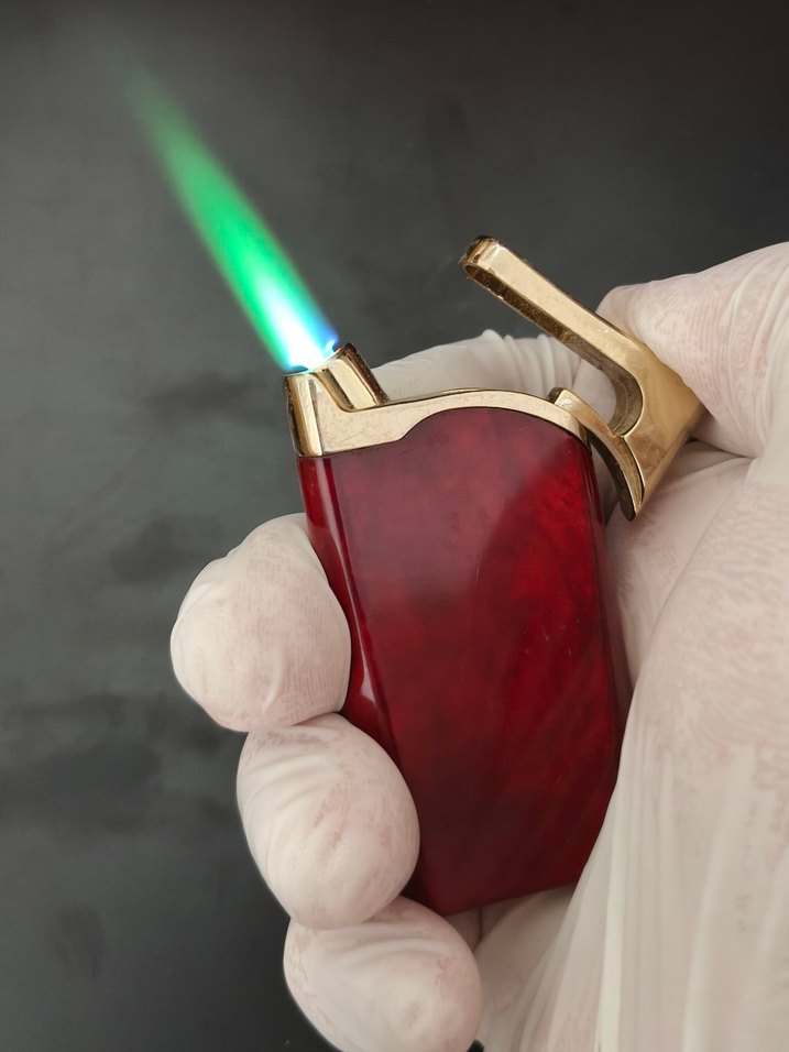 Kırmızı renkli, rüzgar geçirmez çakmak, renkli alev ve metalik üst kapağa sahiptir.