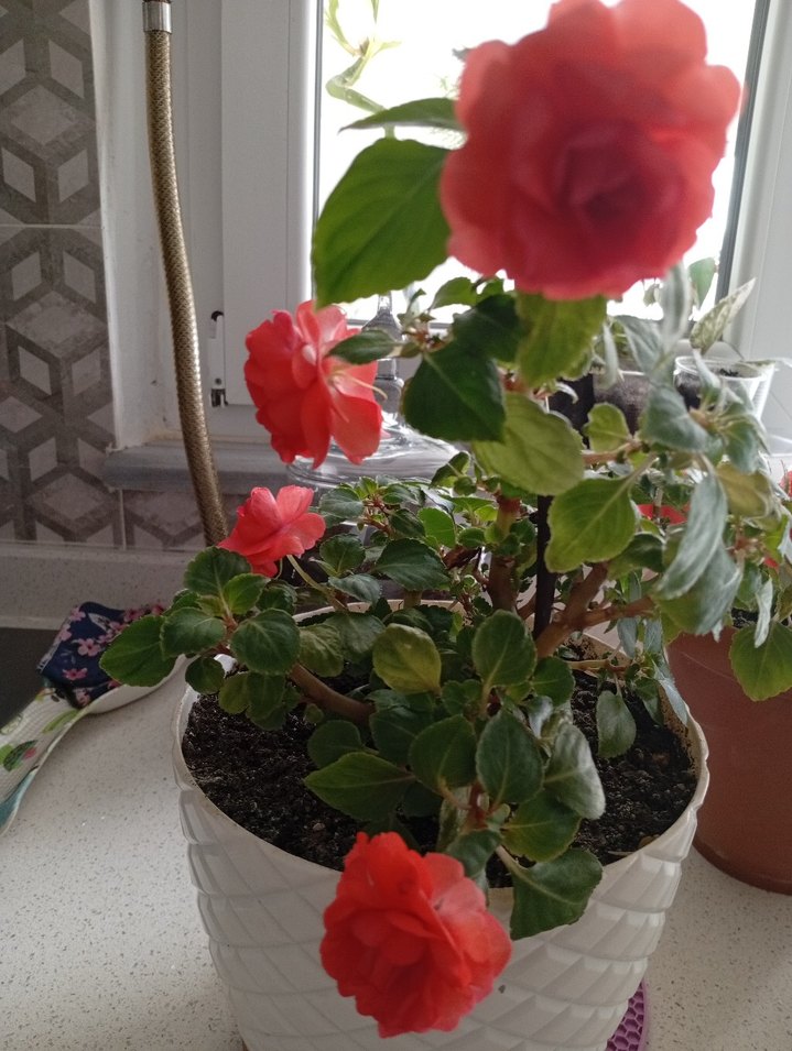 Kırmızı Renkli Saksıda Canlı Çiçek cam güzeli
