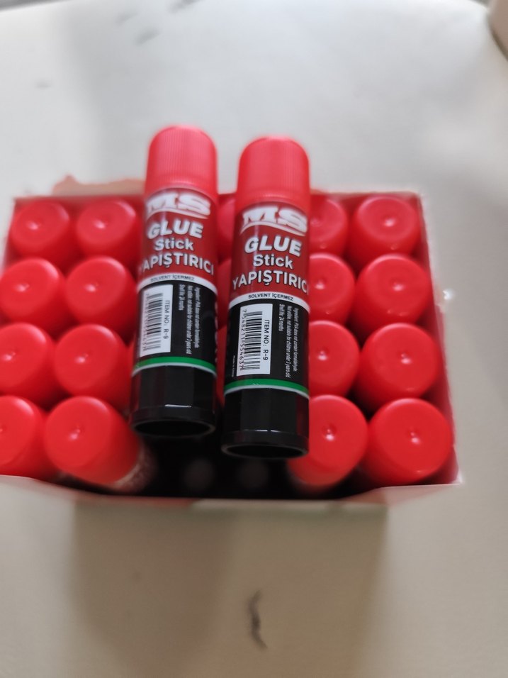 Kırmızı kapaklı yapıştırıcı stickler, kolay uygulanabilir ve taşınabilir. Çok amaçlı kullanım için uygundur. ️