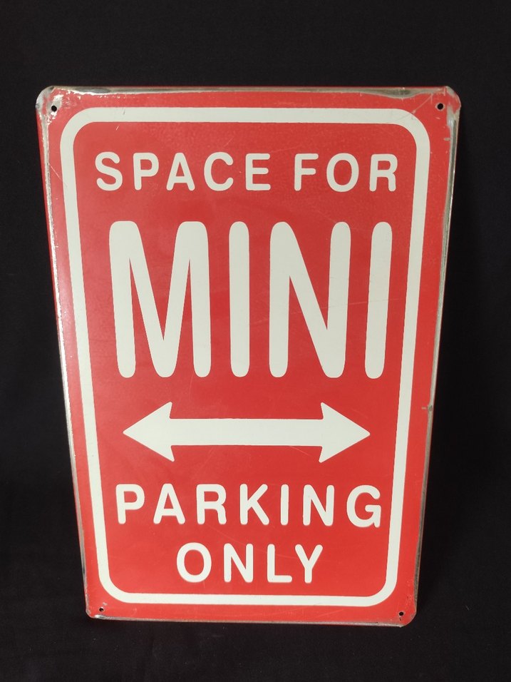 Kırmızı Retro Mini Park Yeri Metal plaka üzerinde 'Space for MINI Parking Only' yazılı, retro tasarımlı, punk rock tarzına uygun bir teneke tabela ölçüler 30x20cm