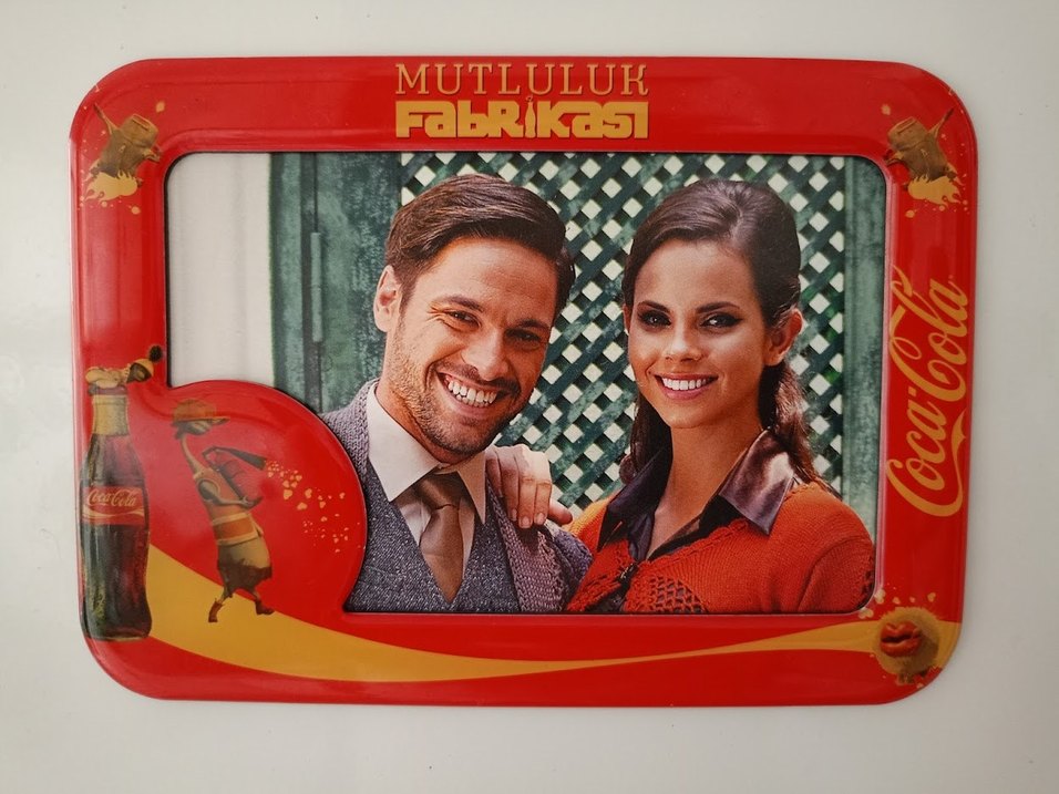 Renkli kırmızı rozet üzerinde 'MUTLULUK Fabrikası' yazısı, retro pop kültür tarzında. Cesur ve nostaljik tasarım, vintage sevenlere uygun.