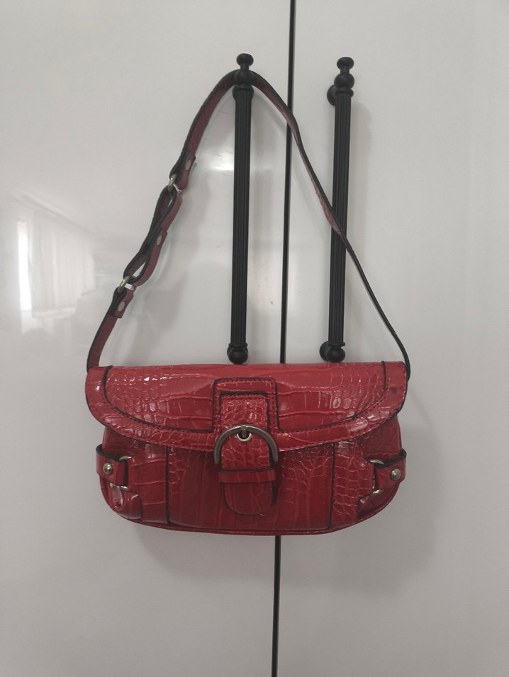 Kırmızı Rugan Yılan Desenli Tokalı Çanta