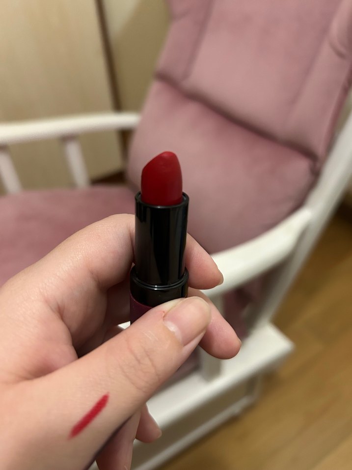 Kırmızı renkte, kremamsı dokulu, zengin renk veren ve kolay sürülen ruj.