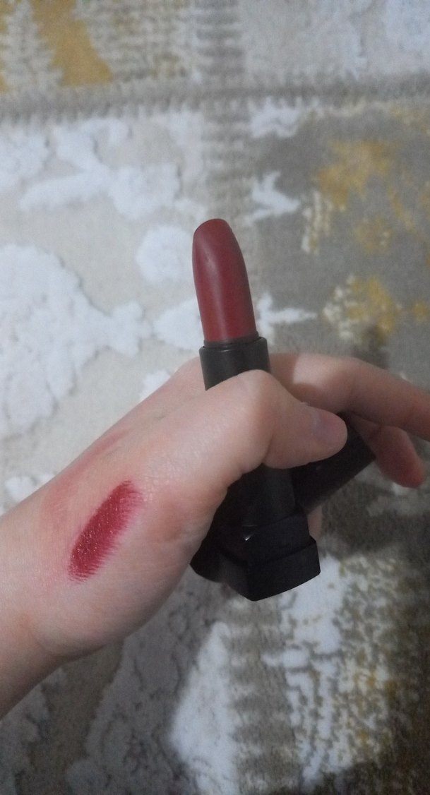 Pastel markasının kırmızı ruju. 2 kere elime denedim video için. Rengini fotoğraflara ekledim.
