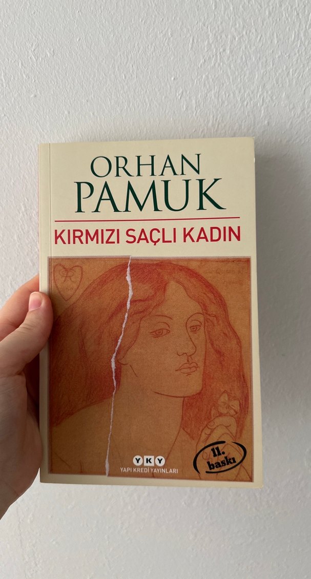 Orhan Pamuk'un "Kırmızı Saçlı Kadın" romanı, kırmızı saçlı kadın illüstrasyonuna sahip. Yapı Kredi Yayınları'ndan basılmış.