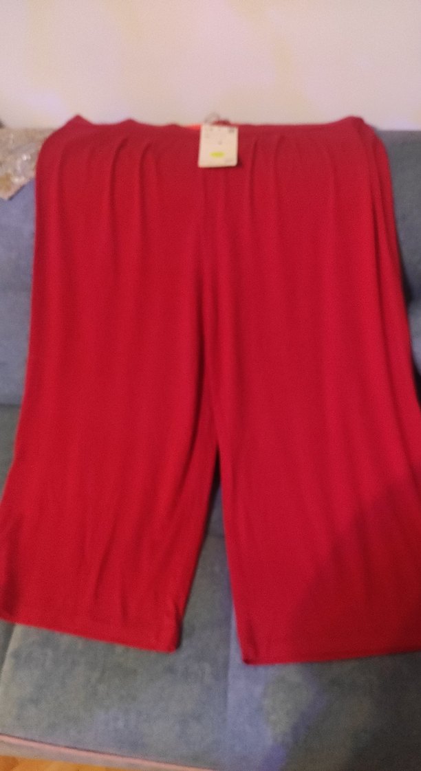 Kırmızı, salaş kesim, midi boy, ipeksi kumaştan, drapeli kadın pantolon. Günlük kullanıma uygun, rahat ve parlak dokulu.42-44 beden