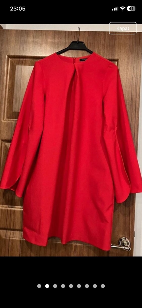 Kırmızı Salaş Uzun Kollu Midi elbise