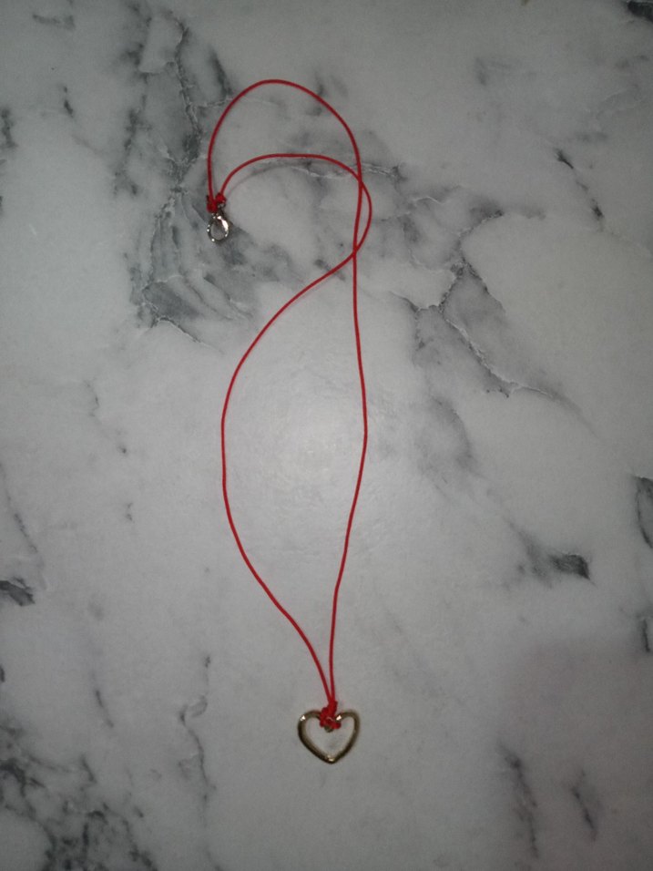 kırmızı şans ipinden ,ucu Gold kalp kolye ..uzun veya kısa belirtin lütfen