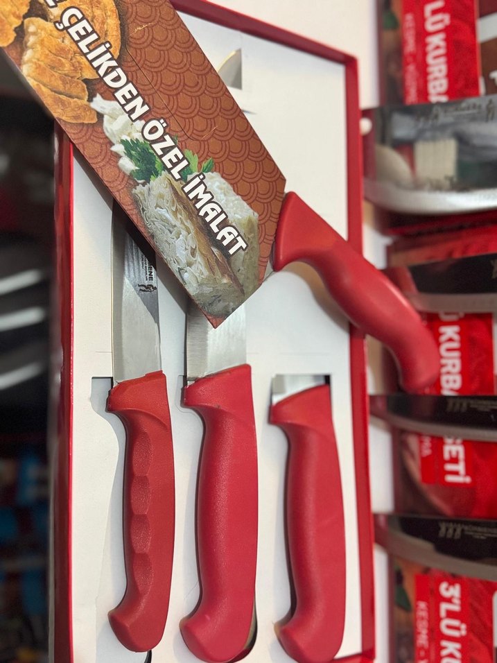 ☑️Satır Hediyeli 3’lü Bıçak Seti (Kırmızı Sap) ☑️Şık tasarım ☑️rahat tutuş ☑️günlük kullanım için ideal. ☑️ Özenli paketleme • hızlı kargo ✅ Toptan & Perakende satış mevcuttur