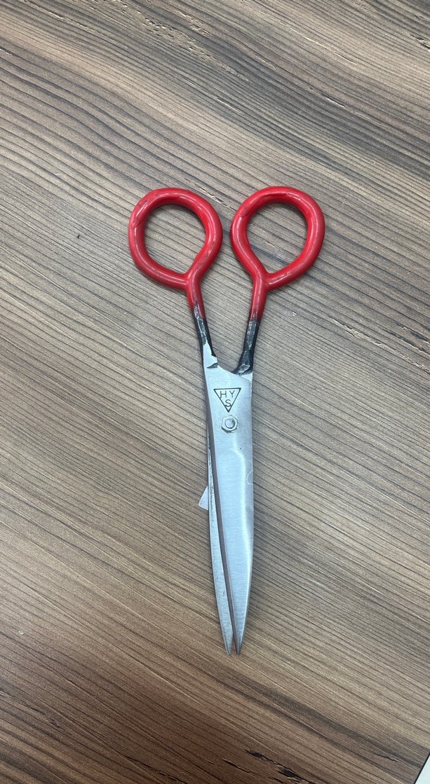 Kırmızı saplı, keskin paslanmaz çelik bıçaklı terzi makası