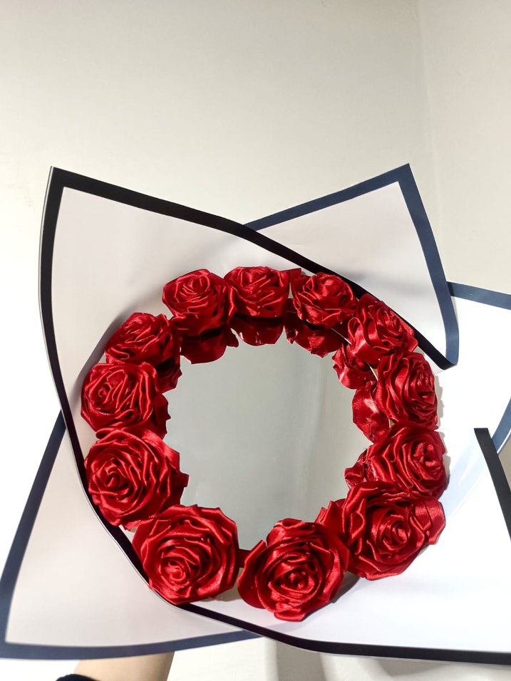 el yapımı aynalı gül tasarımı ❤️Kırmızı saten kurdele ile süslenmiştir ✨12 Adet gül içerir Sevgililer günü, doğum günü ve özel günler için ideal Sipariş için mesaj atabilirsiniz sevgililer gününe özel indirimli
