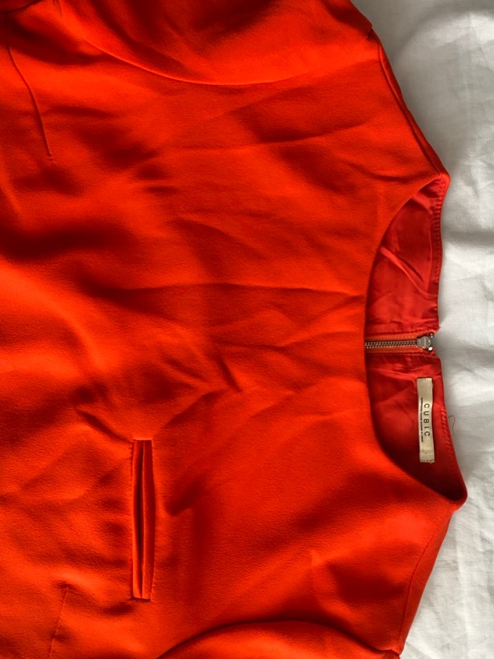 Parlak kırmızı saten kumaştan,tunik/elbise. Günlük sokak stili için uygundur.