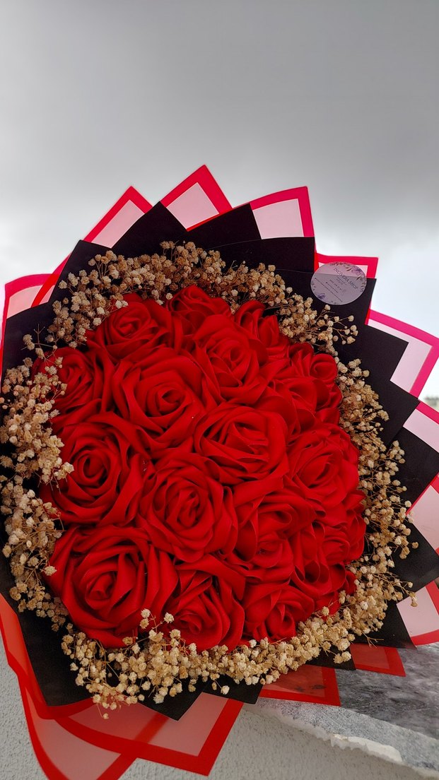 Kırmızı saten gül buketi