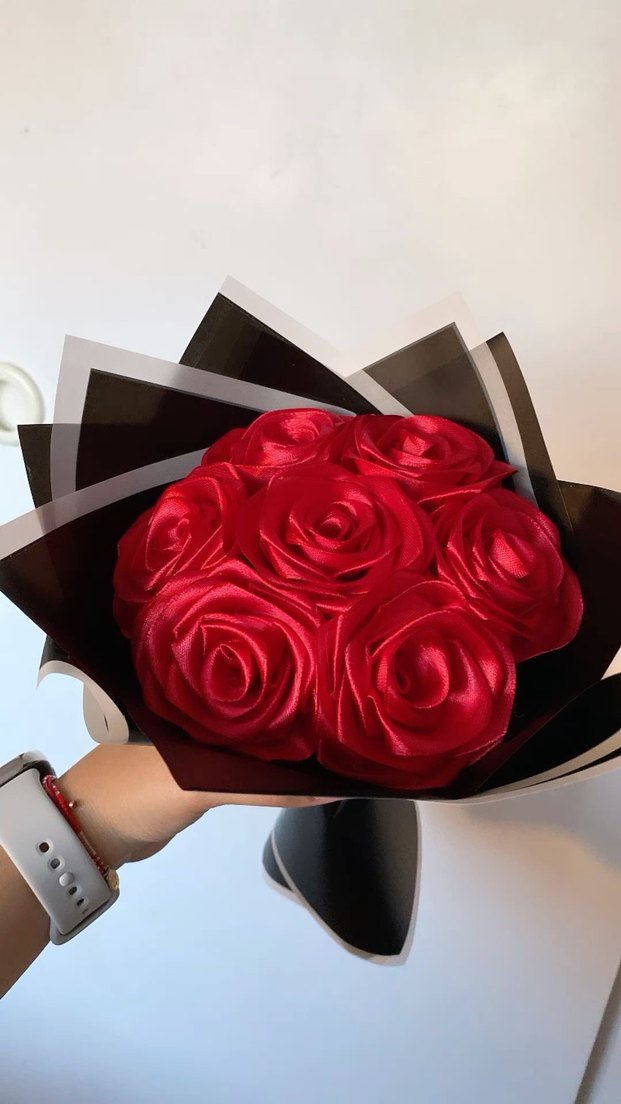 Kırmızı Saten Güllerden Buket