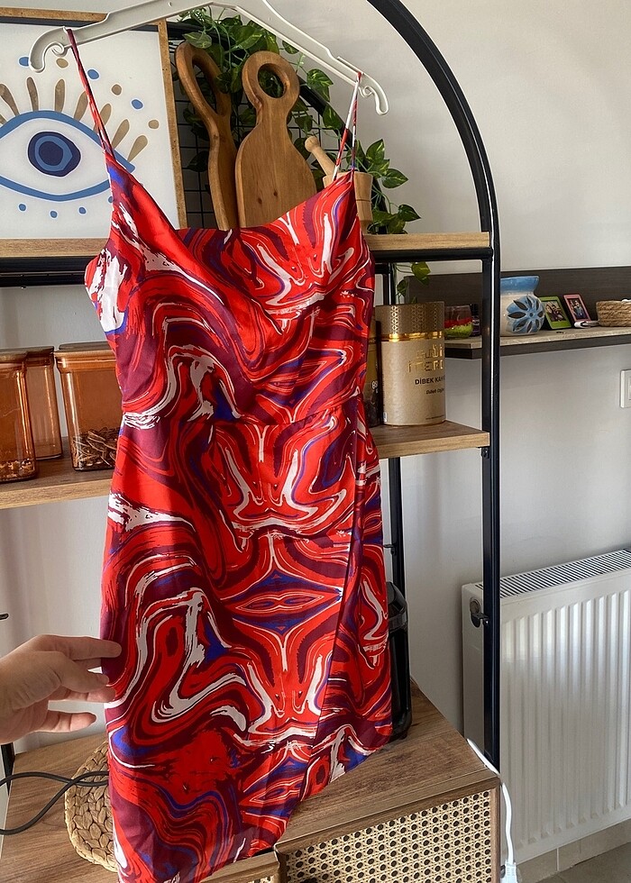 Trendyoldan alındı. Saten bir dokusu var. Üstte oldukça şık duruyor. Bir kere giydim. Boyu yaklaşık 83 cm dir.