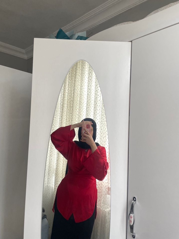 Kırmızı saten tunik