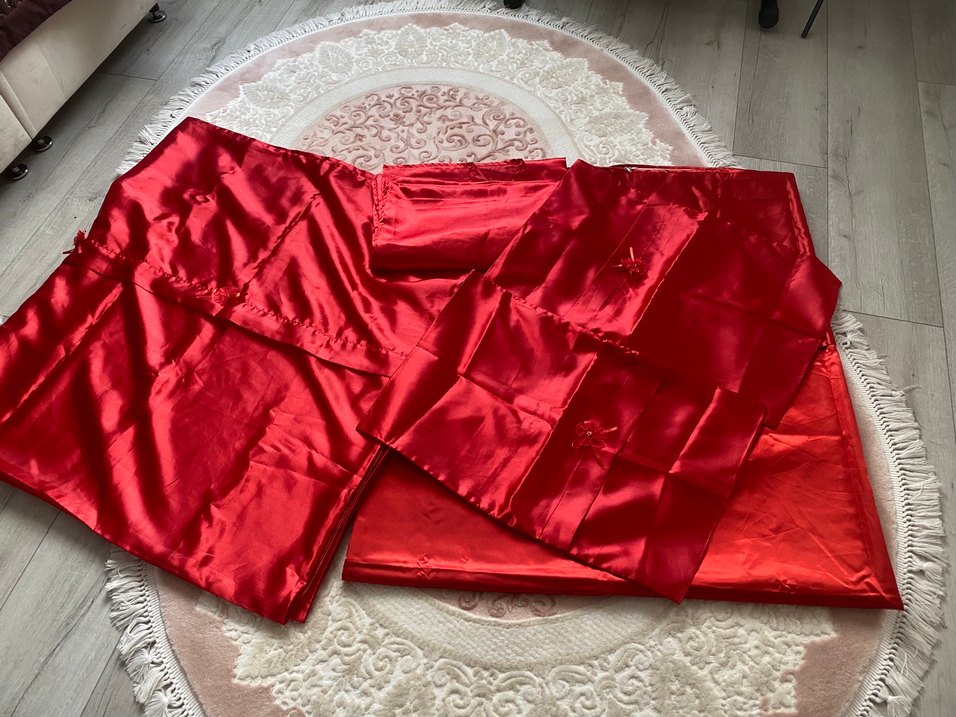 Kırmızı Saten Yatak Örtüsü ve Çarşaf Seti