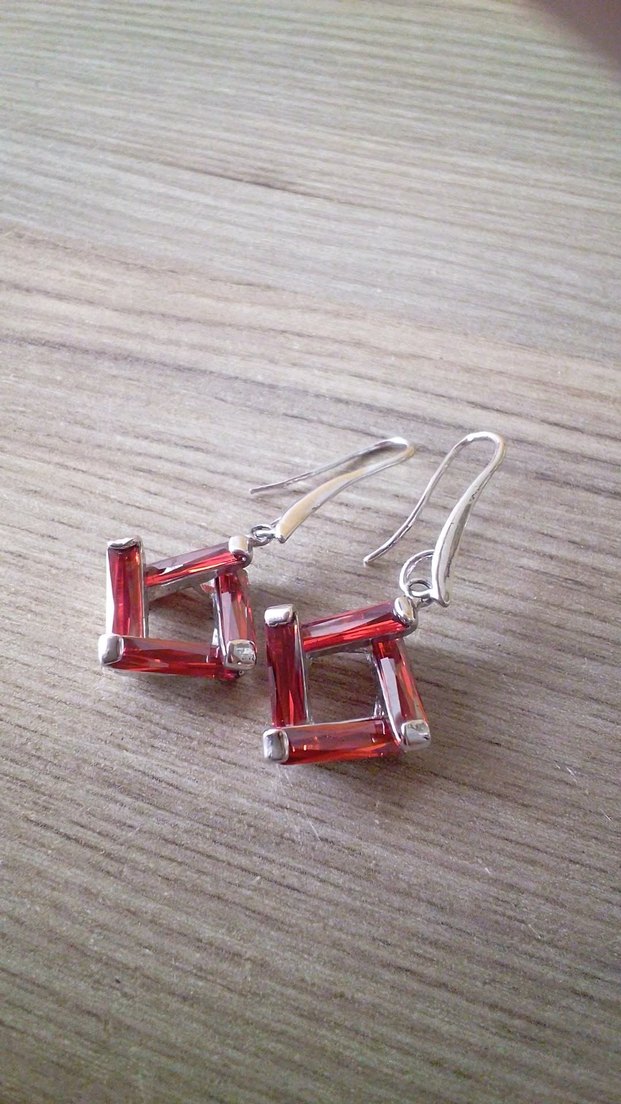 Kısa uzunlukta, kırmızı savaroski taşlı küpe.