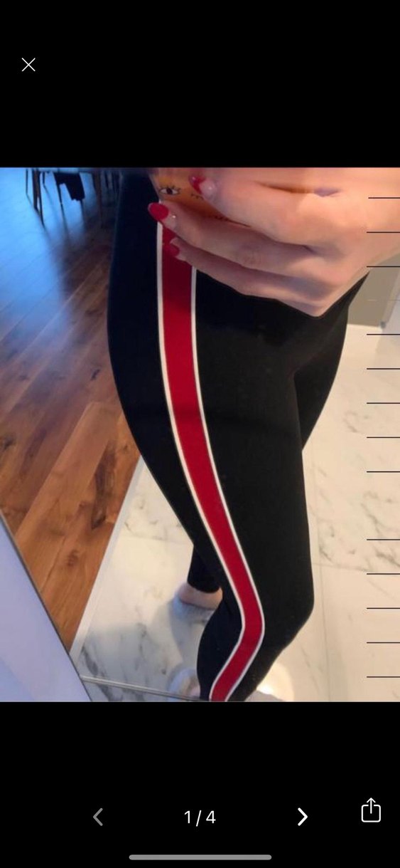 H&m marka xs beden kırmızı şerit detaylı kadın spor tayt. Rahat sentetik kumaştan, spor ve günlük kullanım için uygundur. ♀️